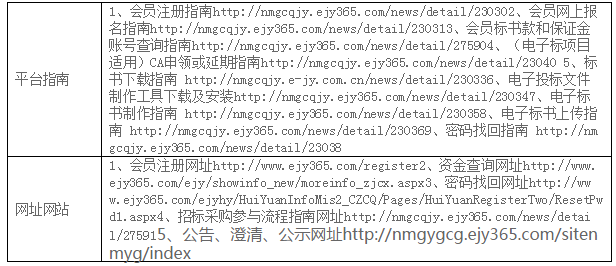 | 附件:設備清單 (2)投標人資格要求 本次招標要求投標人須具備以下資質(zhì),人員、設備、資金等方面具有相應的能力: ①須在工商行政管理部門辦理登記注冊(具有有效營業(yè)執(zhí)照); ②所供貨物均須提供產(chǎn)品合格證,電器類產(chǎn)品須提供“3C”認證證書。 ③所有資質(zhì)文件、報告等真實有效,不得出現(xiàn)偽造、涂改、借用等情形。 ④履行合同所必需的設備和專業(yè)技術(shù)能力及專業(yè)技術(shù)人員; ⑤投標設備必須滿足招標人的設備參數(shù)要求,需要提供投標設備型號品牌、各模塊性能參數(shù)、尺寸等材料和設備正面、側(cè)面、背面、平視俯視等角度彩照; ⑥具有良好的銀行資信、商業(yè)信譽和履行合同的能力,提供財務報告或銀行資信證明; ⑦在最近三年內(nèi)沒有騙取中標和嚴重違約等問題,可提供承諾書或法人在“國家企業(yè)信用信息公示系統(tǒng)”和“中國裁判文書”網(wǎng)無不良記錄的打印頁; ⑧單位負責人為同一人或者存在直接控股、管理關(guān)系的不同供應商,不得參加同一合同項下的采購活動;與采購人存在利害關(guān)系可能影響采購公正性的法人、其他組織,不得參加競標; ⑨不接受聯(lián)合體 (3)招標文件的獲取 凡有意參加本項目的潛在投標人,請于2020年8月26日9時至2020年9月2日17時 (北京時間,下同),登錄內(nèi)蒙古產(chǎn)權(quán)交易市場網(wǎng)站“http://www.nmcqjy.com/”進行會員注冊及辦理CA, CA申領方法及平臺操作指南請登錄(http://www.ejy365.com/newlogin)進行學習,在網(wǎng)上購買并下載招標文件。 提示:CA僅用于投標文件的加密和解密,CA申領在供應商系統(tǒng)中即可完成,建議在開標時間前10天以上制作投標文件,請注意在領購招標文件時間內(nèi)下載招標文件,否則將無法參與本項目,CA售價250元/個,售后不退。 本次項目的澄清/修改/變更/重新招標公告會通過網(wǎng)站發(fā)布,請參加的投標人及時登錄系統(tǒng)查看。 招標文件(僅支持E交易下載領取)售價500元/標段,售后不退。 賬戶名:內(nèi)蒙古產(chǎn)權(quán)交易中心有限責任公司 開戶行:中國銀行內(nèi)蒙古自治區(qū)分行營業(yè)部 行號:104191014056 賬號:以下載標書系統(tǒng)彈出通知信息為準 串標行為認定:標書款和保證金的子帳號為隨機生成,參加同一項目的多家供應商的標書款或保證金匯入同一子賬號,視為串標行為。 (4)投標文件的遞交 投標文件遞交的截止時間(投標截止時間,下同)為2020年9月9日9時30分,投標人應在截止時間前通過內(nèi)蒙古產(chǎn)權(quán)交易中心電子(E交易平臺)招標投標交易平臺遞交電子投標文件。 注:逾期送達的投標文件,電子招標投標交易平臺將予以拒收。采用遠程電子開標,投標人無須到達開標現(xiàn)場,可遠程使用CA解密。 (5)付款方式 協(xié)議簽訂之日起5個工作日內(nèi),我方向供應商支付貨款總金額的45%作為定金,并于到貨5個工作日內(nèi),供應商向我方提供全額形式增值稅普通發(fā)票,再付50%貨款,剩余5%貨款作為質(zhì)保金,如無質(zhì)量問題1年后付清。 3.聯(lián)系方式 采購人名稱:內(nèi)蒙古烏蘭美健康服務集團有限公司 聯(lián) 系 人:姚佳秀 聯(lián)系電話:17604742599 內(nèi)蒙古產(chǎn)權(quán)交易中心有限責任公司 地址:內(nèi)蒙古呼和浩特市賽罕區(qū)阿吉泰路3號 聯(lián) 系 人: 楊艷 聯(lián)系電話: 18586095937 郵箱:nmcqcg@163.com 技術(shù)支持電話:0471-3473040(報名、標書下載上傳等)/0471-3473016(CA申請) |