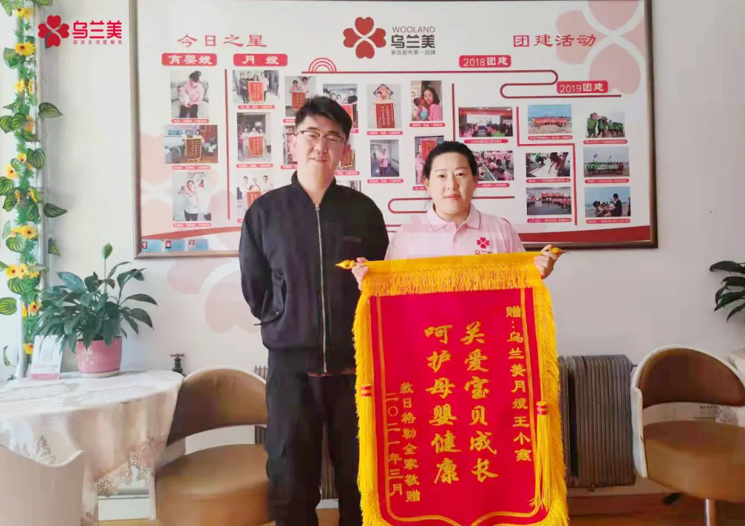 近日,烏蘭美母嬰服務(wù)中心迎來(lái)了一位高大帥氣的寶爸,專程來(lái)到中心感謝烏蘭美育嬰嫂王小燕,并對(duì)王小燕贊不絕口!”在王姐入戶的一個(gè)多月里,她表現(xiàn)非常好。不僅懂得專業(yè)的月子餐制作,更是對(duì)營(yíng)養(yǎng)知識(shí)了若指掌。“二胎媽媽說(shuō)道:”同時(shí),在育嬰方面更是面面俱到,包括給小寶寶日常清潔護(hù)理、洗澡、撫觸以及好習(xí)慣的培養(yǎng)等,她都事無(wú)巨細(xì)“。