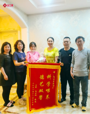 △寶媽烏云娜一家贈送錦旗以此表達(dá)對烏蘭美月嫂張順玲的感激