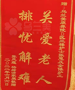 近日,烏蘭美康養(yǎng)院連續(xù)收到多面寫有“耐心負(fù)責(zé)好服務(wù),情真意切似家人”、“關(guān)愛老人,排憂解難”、“愛心奉獻,愛崗敬業(yè)”、“熱情高效為企,嚴(yán)格規(guī)范可敬”等字樣的錦旗。每一面錦旗的背后,都飽含著“養(yǎng)老人”的付出和長者的信任,每一面錦旗的背后,都是精心護理和愛心服務(wù)的疊加。